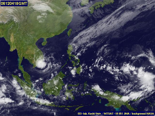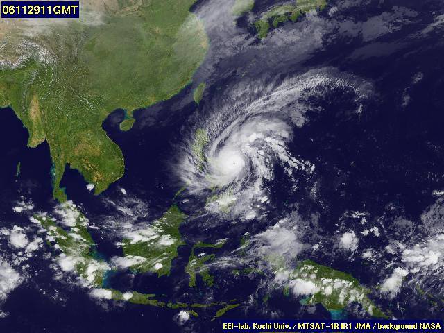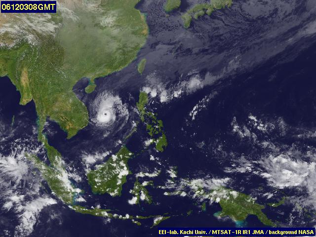 v minulých čtyřech měsících. Dnes poněkud zeslábla a z ostrova Mindoro míří nad Jihočínské moře. Podle předpovědí udeří