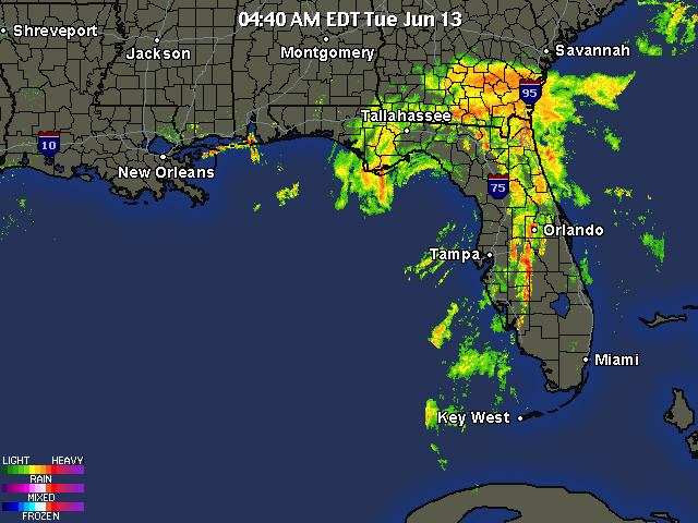 Tracking info for Tropical Storm Alberto Time Lat Lon Wind(mph) Pressure Storm type ---------------------------------------------------------------------- 13 GMT 06/10/06 21.1N 85.3W 35 1003 Tropical Depression 15 GMT 06/10/06 21.5N 85.6W 35 1003 Tropical Depression 21 GMT 06/10/06 21.8N 85.7W 35 1004 Tropical Depression 03 GMT 06/11/06 23.4N 86.2W 35 1003 Tropical Depression 09 GMT 06/11/06 23.5N 87.0W 35 1003 Tropical Depression 15 GMT 06/11/06 23.9N 88.1W 45 1004 Tropical Storm 21 GMT 06/11/06 24.5N 87.8W 45 1004 Tropical Storm 03 GMT 06/12/06 25.3N 87.7W 45 1004 Tropical Storm 09 GMT 06/12/06 26.2N 87.2W 50 1001 Tropical Storm 15 GMT 06/12/06 27.1N 85.9W 70 997 Tropical Storm 21 GMT 06/12/06 27.9N 85.1W 70 997 Tropical Storm 03 GMT 06/13/06 28.4N 84.6W 70 995 Tropical Storm 09 GMT 06/13/06 29.2N 84.2W 65 995 Tropical Storm 15 GMT 06/13/06 29.8N 83.8W 50 996 Tropical Storm 21 GMT 06/13/06 30.7N 83.2W 40 1000 Tropical Storm 03 GMT 06/14/06 31.8N 82.3W 40 1002 Tropical Storm 09 GMT 06/14/06 33.5N 81.4W 35 1003 Tropical Depression 15 GMT 06/14/06 35.0N 79.5W 35 1004 Tropical Depression