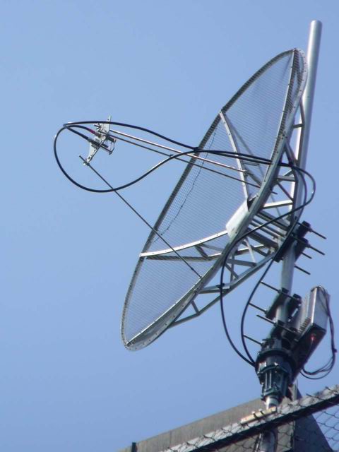 Do večera jsem ještě postavil stožár s parabolou pro 9 a 6cm, tentokrát místo do JV do SZ rohu ochozu s tím, že